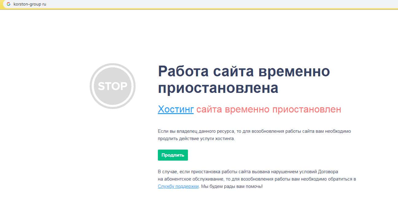 При попытке перейти на официальный сайт мошенников Korston Group наша попытка не увенчалась успехом, так как шулера Корстон Групп нагло слились после волны многочисленных разводов своих пользователей на деньги. Как выглядит страница, которая отрывается при поиске официального сайта Korston Group вы можете увидеть на изображении ниже.