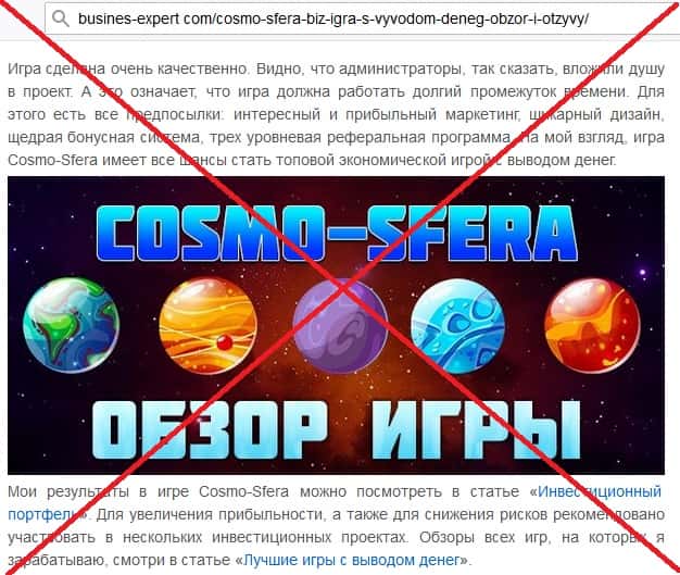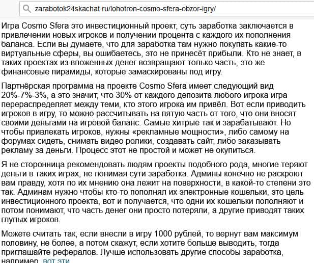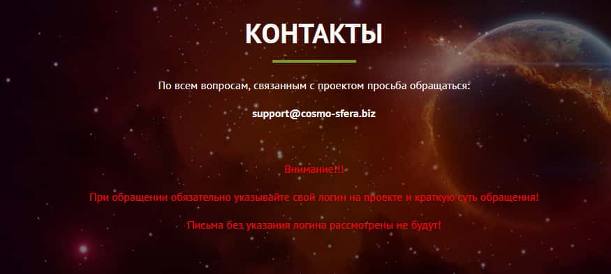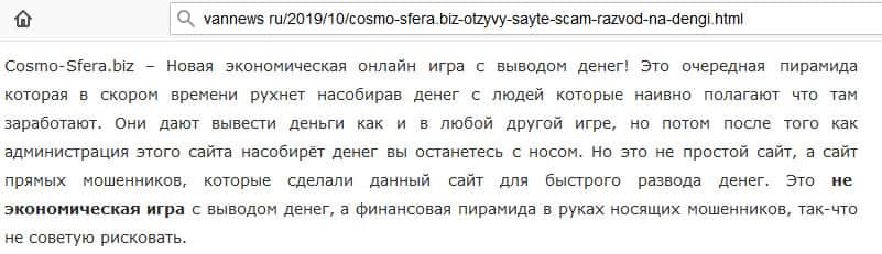 - Описание сайта шаражки Космо Сфера