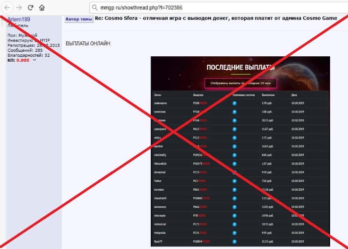 - Мошенники Cosmo-Sfera Biz демонстрируют выплаты, чтобы привлечь новых жертв