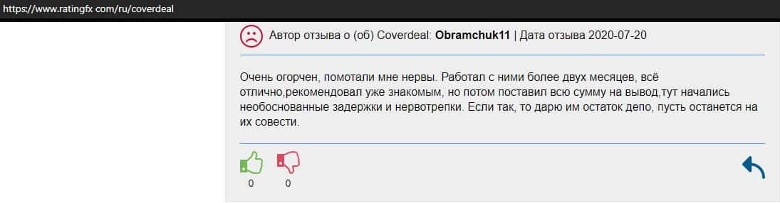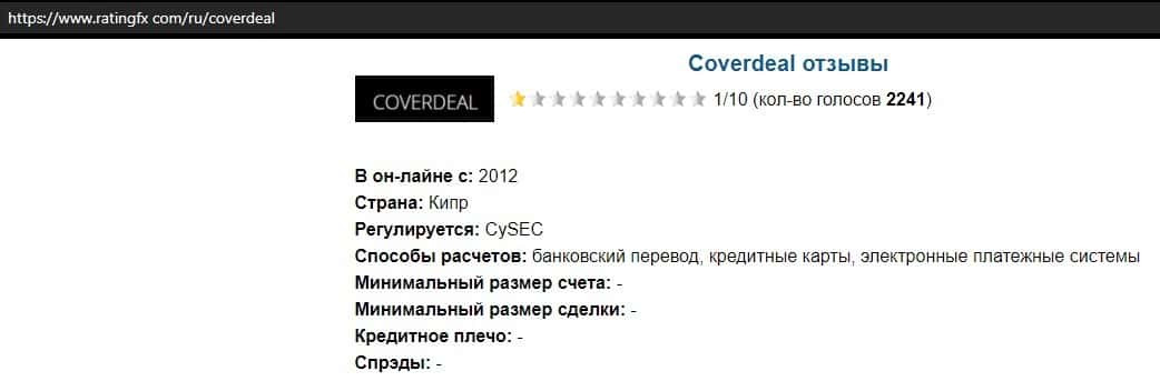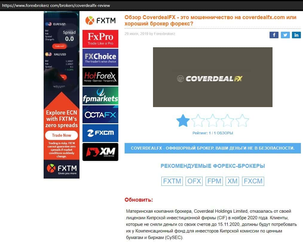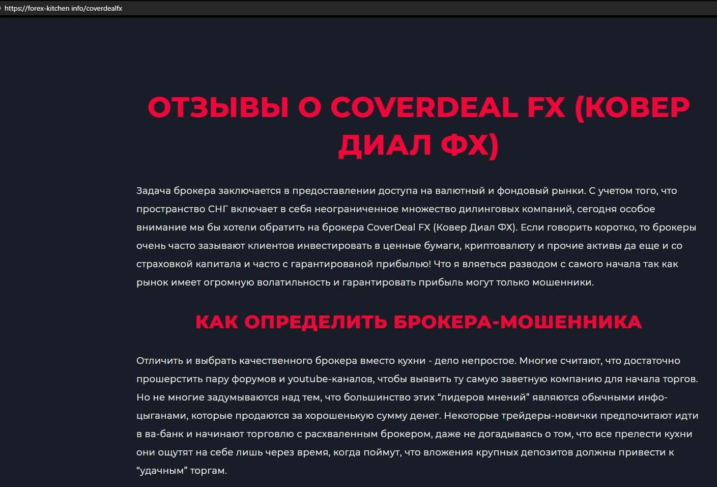 - Отзывы клиентов о мошенниках CoverDeal FX