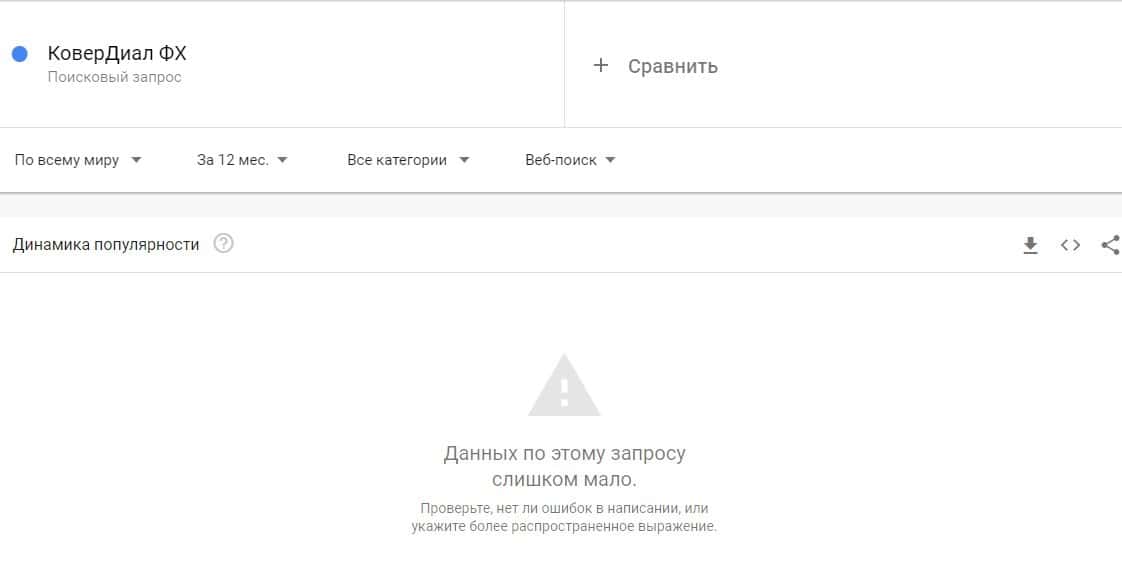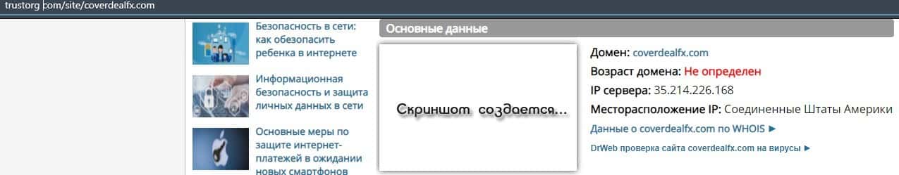 Та же ситуация и с обычным интернет-сайтом мошенников "coverdealfx.com", данных о котором в запросах Гугл Трендс не было обнаружено.