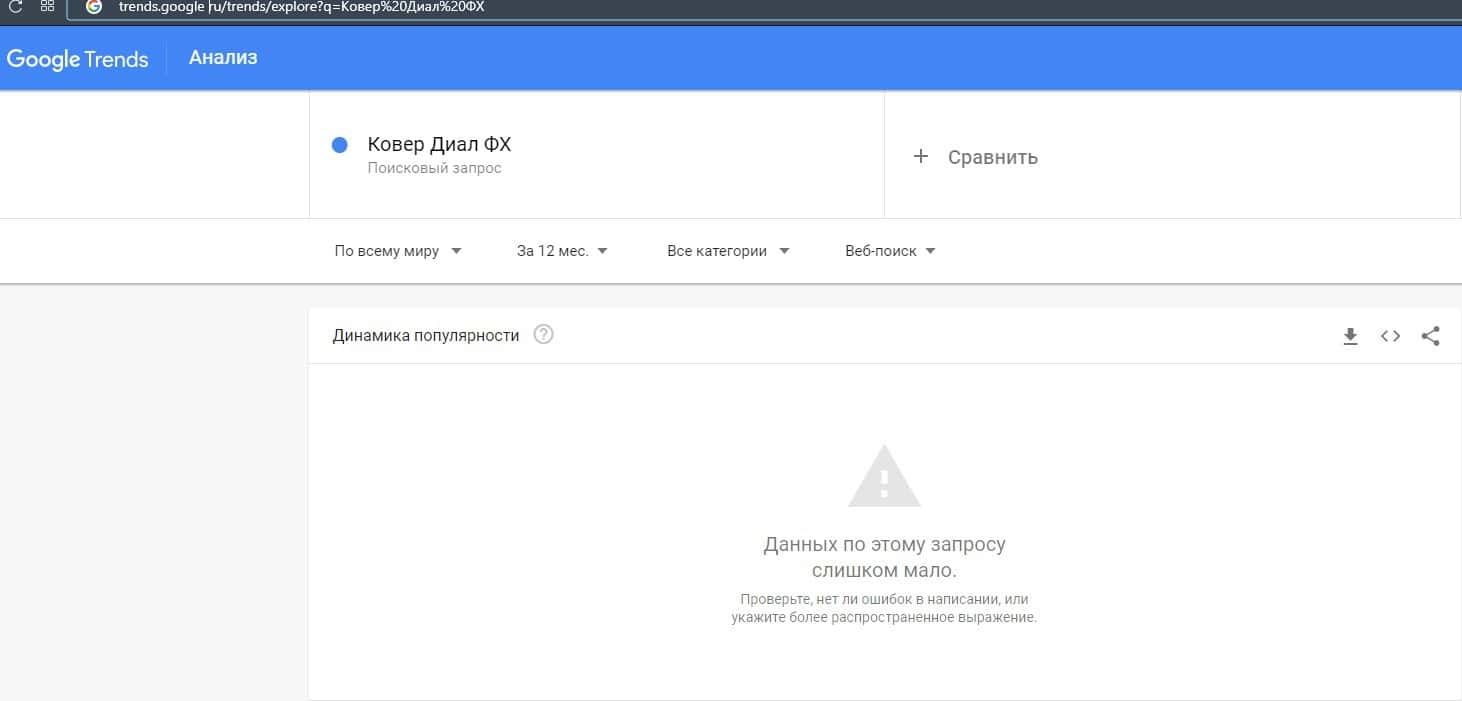 По версии Гугл Трендс мошенники с брендом "Ковер Диал ФХ" не набрали ни единого показа за месяц, что говорит об их несомненно отсутствующую популярность.
