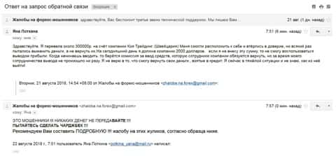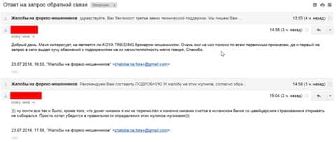 В том случае если кидалы из Коя Трейдинг и Вас ограбили, то в такой ситуации непременно напишите об этом случае нам. Оставьте свой электронный адрес в форме обратной связи чуть ниже, с Вами свяжутся.