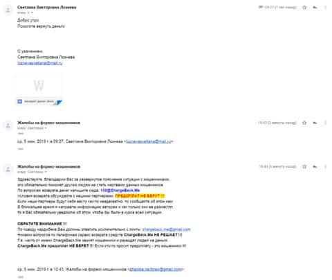 Лохотрон, в данном случае, прошел по стандарту и Koya-Trading присвоила себе порядка 10 000 рублей. Клиент очень расстроился и стал искать решение вопроса с выводом в интернете. На одном из форумов одна женщина рассказала, как обратившись в организацию ChargeBack.Me ей помогли вернуть украденное именно с форекс-лохотрона Коя Трейдинг, куда он и обратился.