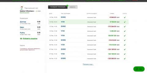 Ниже представлен скриншот с историей транзакций с платежной системы AdvCash, которую использовала жертва для пополнения счета открытого в кухни Коя Трейдинг.