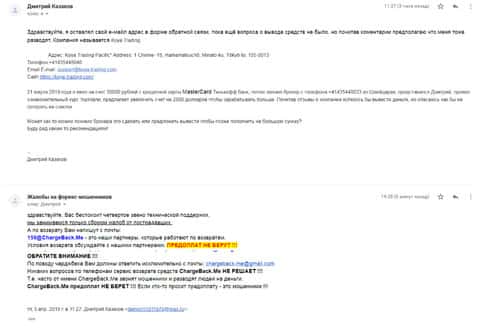 Для того, чтобы попытаться вернуть утраченные деньги из лохотрона КояТрейдинг, автору последующей жалобы на этих явных аферистов Форекс, необходимо как минимум обратится в специализированный интернет-сервис ChargeBack.Me где возможно ему помогут в этом нелегком деле.
