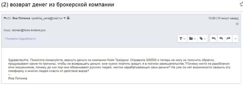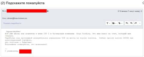 Ниже представлено первоначальное письмо, которое потерпевшая прислала к нам в редакцию с просьбой о помощи в связи с попадаловом к брокерской конторе Koya-Trading.
