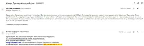 Уже жалобы пошли на мошенников КОЯ Трейдинг, хотя жалоба и скудная, но с учетом характера "бизнеса", нужно относиться к мошенникам КОЯ Трейдинг, как и к любому другому брокеру с ОЧЕНЬ БОЛЬШЕЙ НАСТОРОЖЕННОСТЬЮ !!!