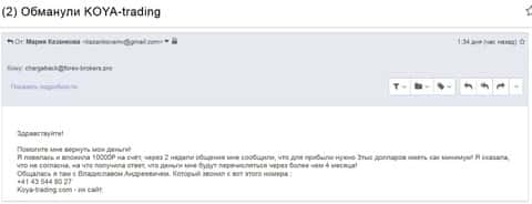 - Подробная жалоба на Koya Trading - клиент утратил примерно 5000 $