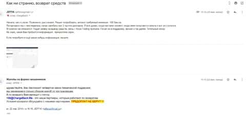 По поводу возврата утраченных денег автору последующей жалобы на мошенников КОЯ Трейдинг необходимо обратится в специализированную службу ChargeBack.Me где возможно ему помогут осуществить операцию по так называемому спасению его денежных средств.