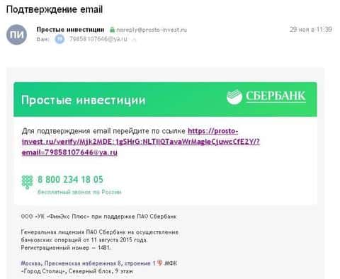 А это письмо пришло после того, как жулик Руслан из Коя Трейдинг зарегистрировал клиента на подставном сайте prosto-invest ru.