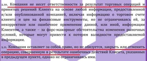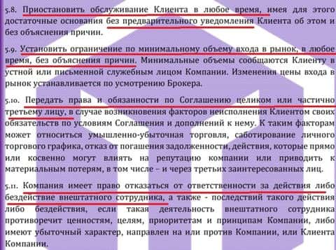 И целый перечень ловушек от конторы Коя Трейдинг. Данная жульническая организация имеет право приостановить торги в любой момент без объяснения, передать права по соглашению кому-нибудь другому и снять с себя ответственность перед клиентов, переложив все финансовые риски лишь на него одного.