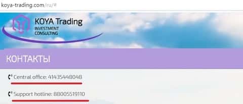 Если Вам звонили с телефонных номеров 88005519110 и 41435448048, то это были жулики рынка Форекс, брокерская кухня Коя Трейдинг. Эта контора названивает потенциальным клиентам для того чтобы те, перевели на счет онлайн-лохотрона энную сумму денег, которую обратно вывести уже не удастся.