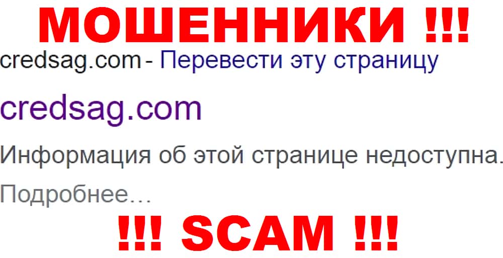 Домен интернет-разводняка "credsag.com" тоже мало кого интересует. О какой мировой популярности говорят жулики, если никто даже не пытался найти их дешевый сайт-обманщик.