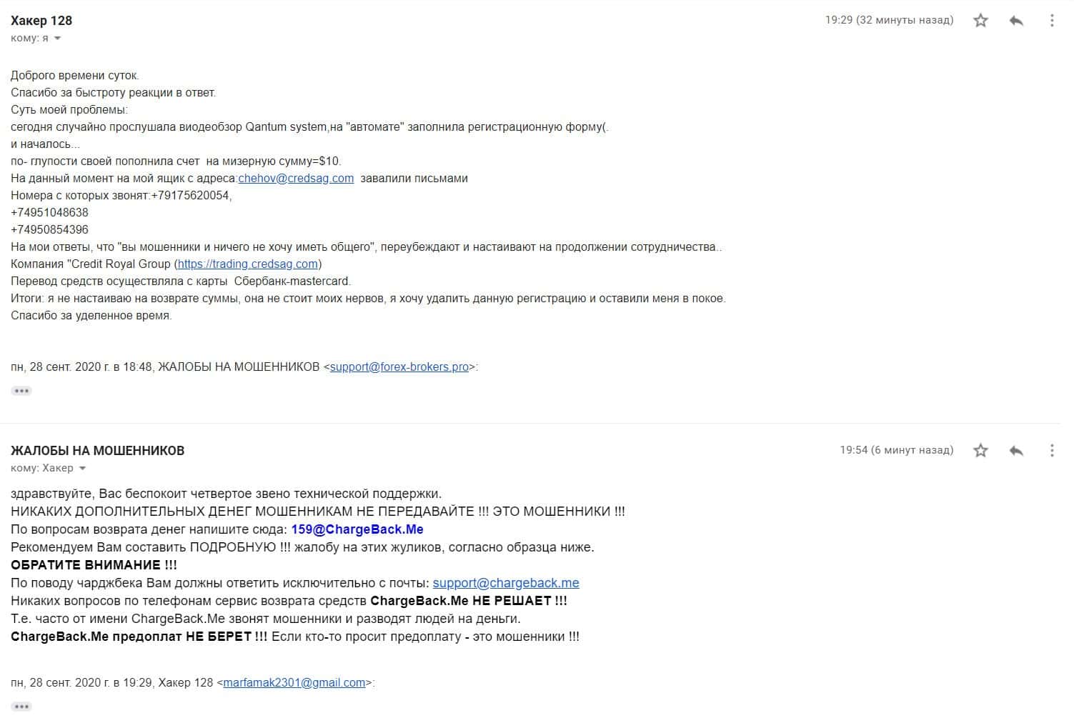 Жулье CredSag не желает возвращать своим клиентам украденные деньги. Мнимая техподдержка разводил вешает жертвам на уши лапшу, утверждая, что вывод был произведен.