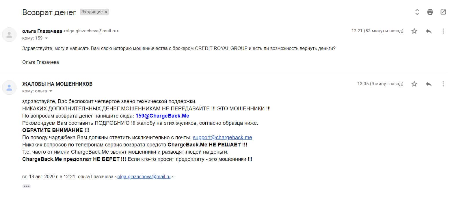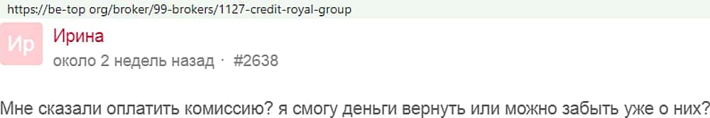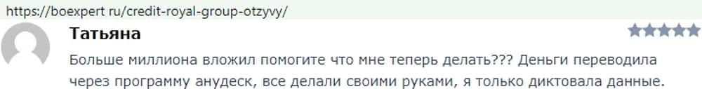 - Жалоба на лохотрон Кредит Роял Групп, который кинул жертву на 10 500 долларов