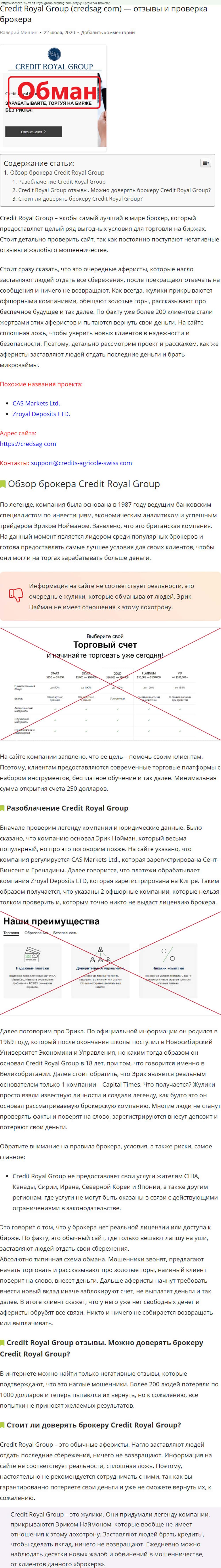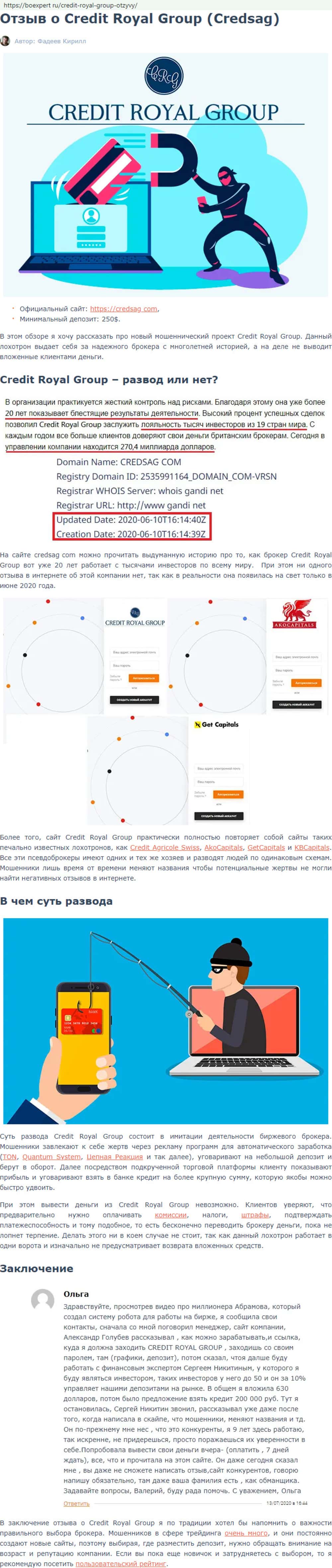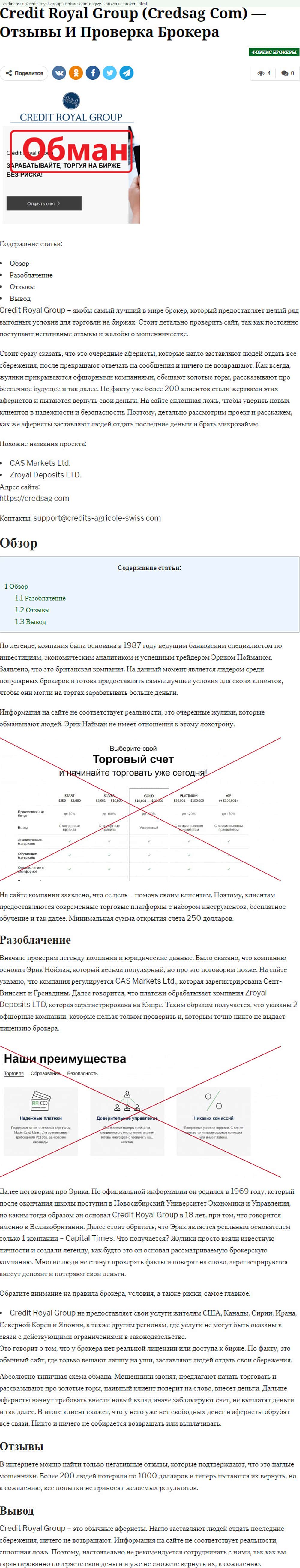 Аферисты Кредит Роял Групп получили негативную статью еще от одного интернет обозревателя, прочтя которую, можно удостовериться в дутости финансового пузыря CredSag.