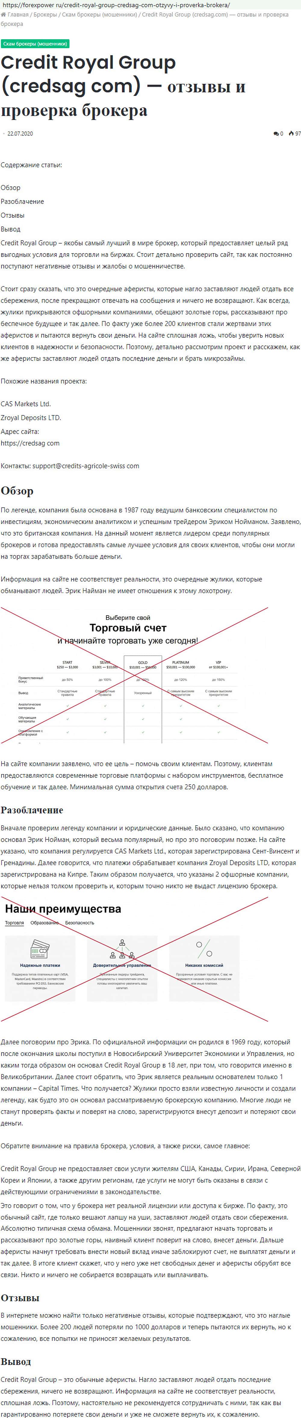 Очень подробный обзор внебиржевой лоховозки Кредит Роял Групп предоставил портал форекс-скам орг. Ознакомившись с ним, можно сразу понять, что CredSag - дешевая авантюра.