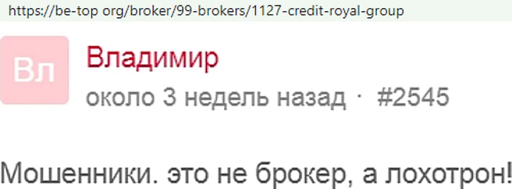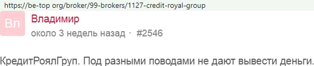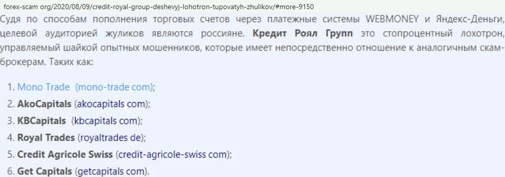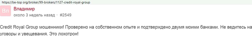 - Обзоры других сайтов на форекс-аферу Кредит Роял Групп