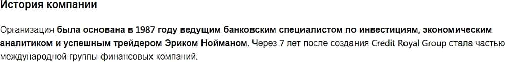 На своем убогом сайте наперсточники Кредит Роял Групп рассказывают, что их шарашкина контора была основана неким персонажем, который как оказалось просто выдуман аферюгами: