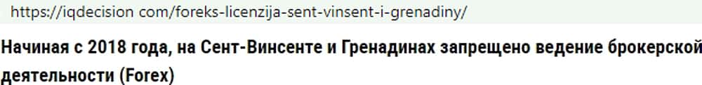 Конторка CAS Markets Ltd, владеющая лохотронщиной Кредит Роял Групп тоже не может иметь лицензии потому, как в государстве Сент-Винсент и Гренадины запрещено брокерство.