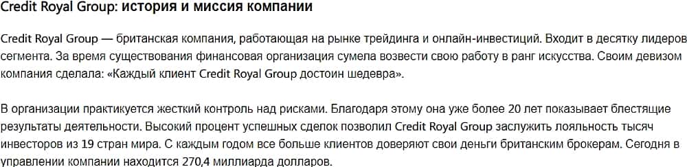 Торговая недоплатформа спекулянтов Кредит Роял Групп
