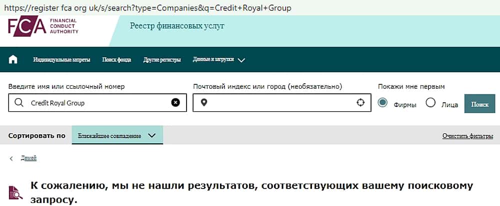На своем подвальном ресурсе форекс-щипачи Кредит Роял Групп указали, что являются британской компанией. Все брокеры Соединенного Королевства должны обладать лицензией.