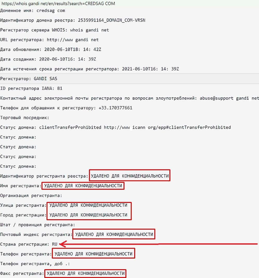 Свои данные владелец домена credsag com скрыл, как и все аферисты, но вот выясняется, что так называемый британский псевдоброкер, был зарегистрирован человеком из России.
