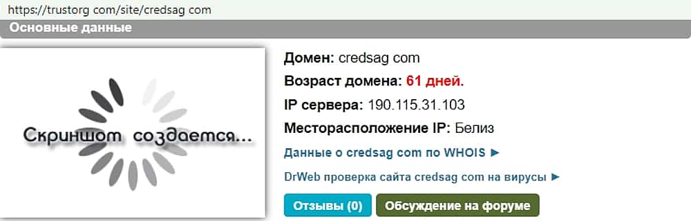 Пользователи сети видят в недопроекте credsag com лохоприемник