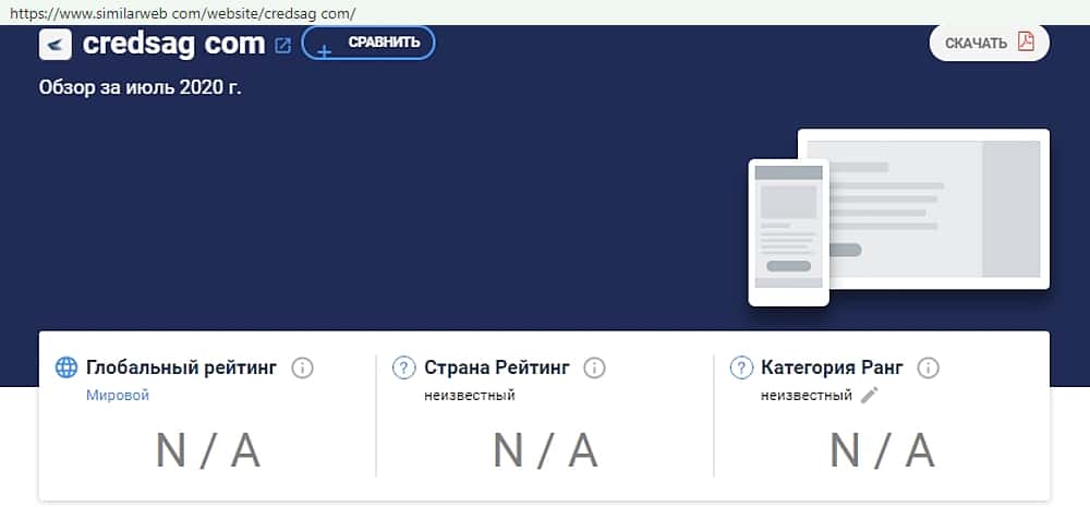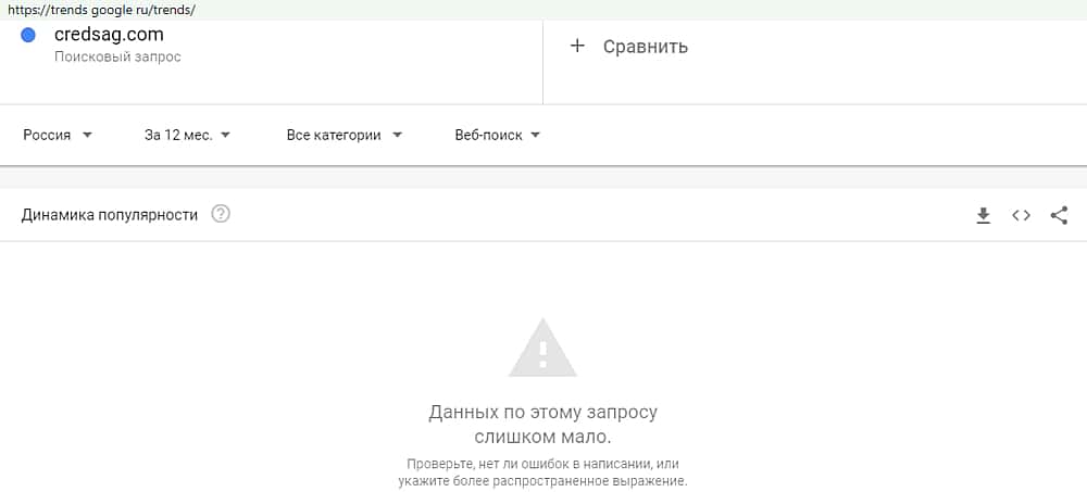 Запрос "credsag com" в поисковую строку сервиса Google не вводился ни разу, а это говорит о крайней непопулярности псевдоброкера, как бы ни расхваливали себя сами мошенники.
