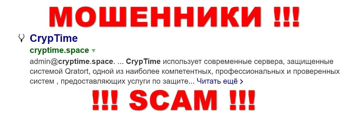 Крип Тайм - аферисты и мошенники! Эта жульническая контора выдает себя за брокерскую площадку и обещает высокие прибыли своим трейдерам. На самом же деле она представляет собой обычную финансовую пирамиду, в которой выигрывают лишь её создатели. Всю возможную информацию о себе мошенники старательно спрятали, что бы иметь возможность безнаказанно присваивать чужие деньги. Эти мошенники связаны с жуликами из Траст Лав, Ави Трейд, Топ Финанс, Наздак 24, Ворлд 4 Маркет и Титан Трейд Клуб. Не поддавайтесь на красивые и желанные слова мошенников, подобных КрипТайм, о богатстве - обманут!
