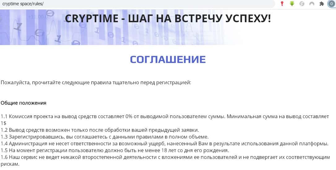 Ниже приводим Вашему вниманию полный текст клиентского соглашения трейдеров с администрацией торговой площадки Крип Тайм для его более скрупулезного изучения.