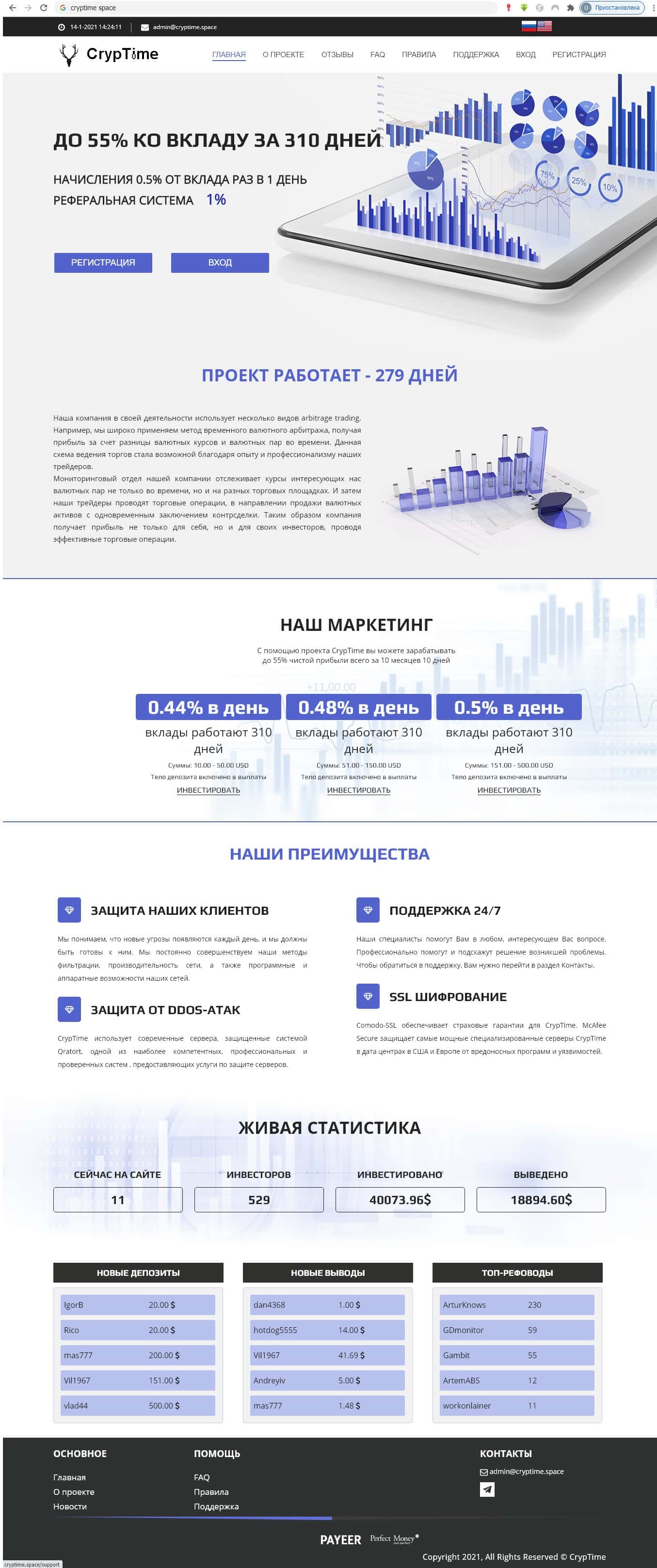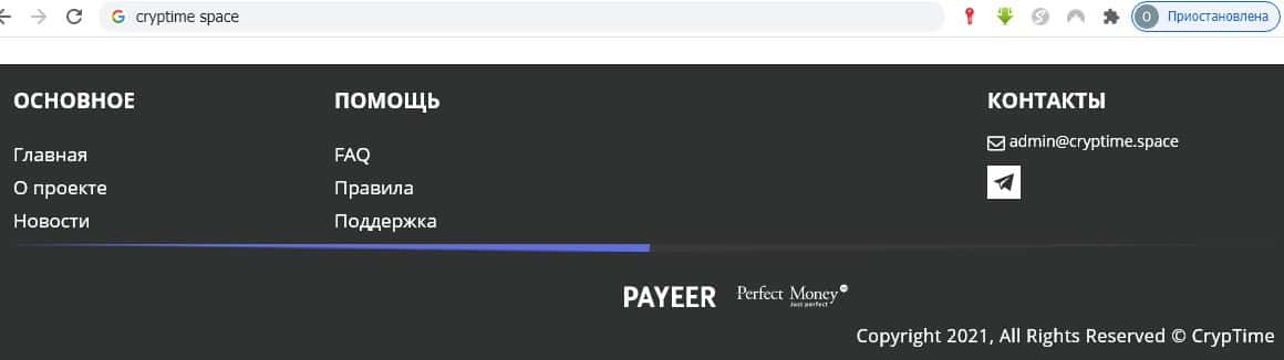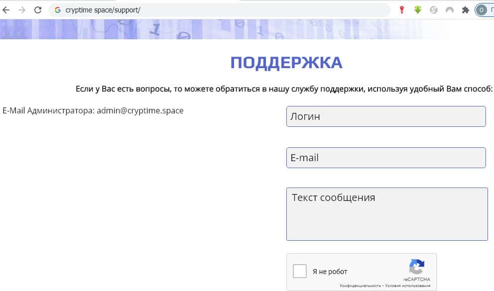 cryptime space - непосредственно сайт мошеннического проекта Крип Тайм
