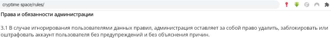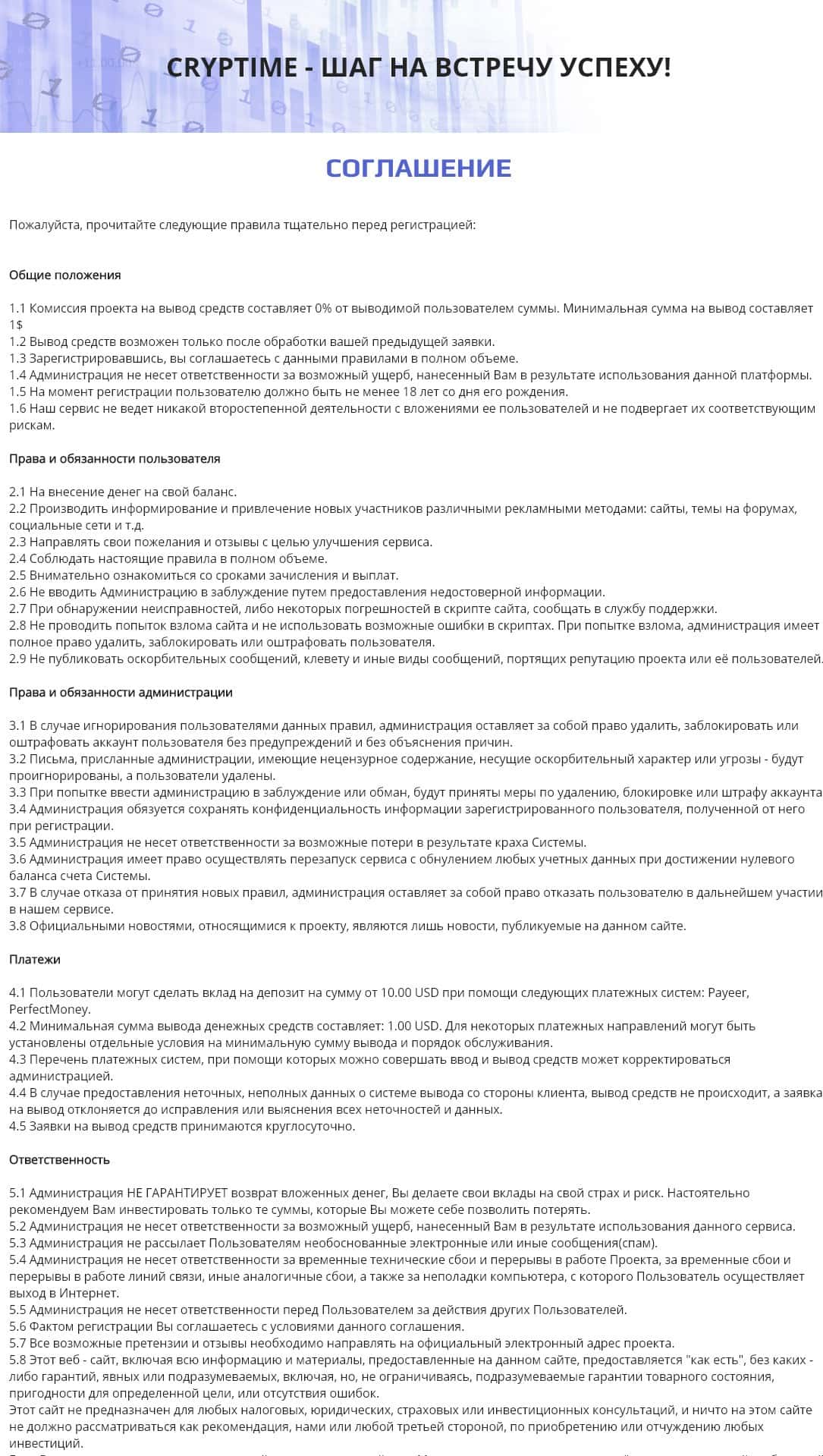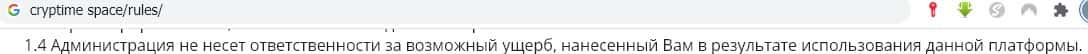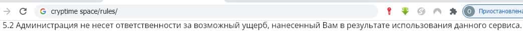 В пункте 5.2 адиминистрация жульнического проекта Крип Тайм очередной раз отказывается от ответственности за любой ущерб, приненсенный использованием его ресурса.