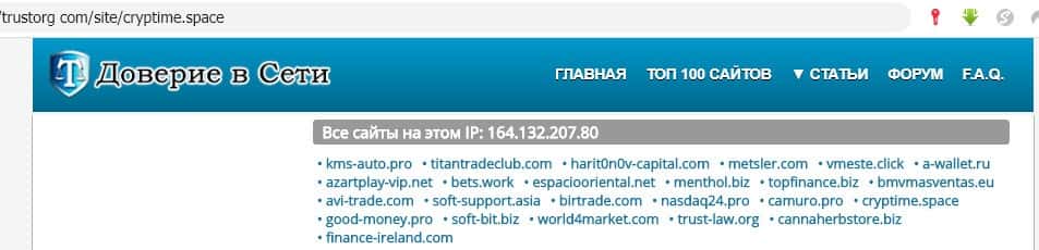 Как свидетельствует портал trustorg на одном IP с этими мошенниками располагается ещё достаточное количество мошеннических ресурсов. Полный перечень к Вашему вниманию.