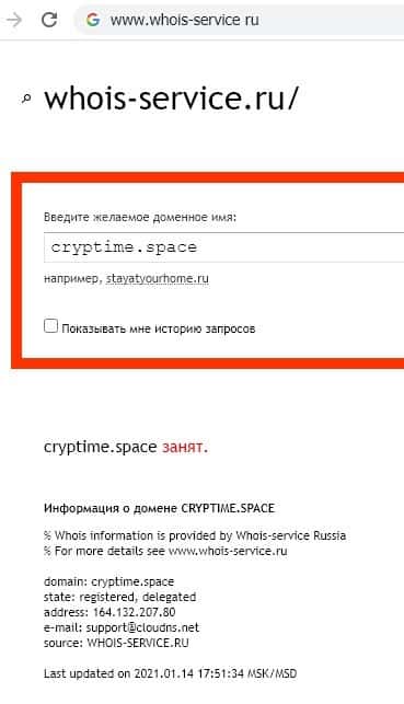 - На кого зарегистрирован домен мошеннического портала Крип Тайм?