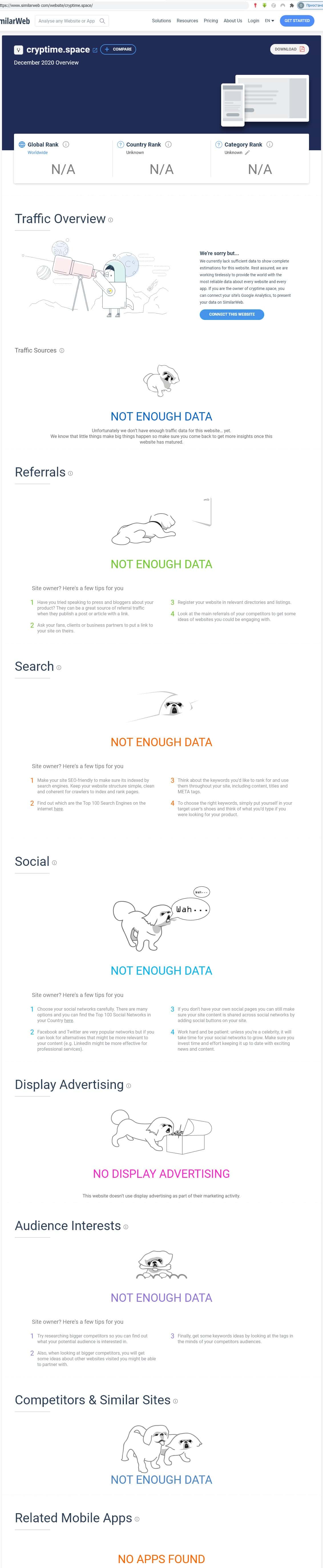 Сервис анализа деятельности сайтов similarweb ни по одной категории не выдаёт каких-нибудь внятных результатов. Причиной тому низкая популярность этого брокера Крип Тайм.