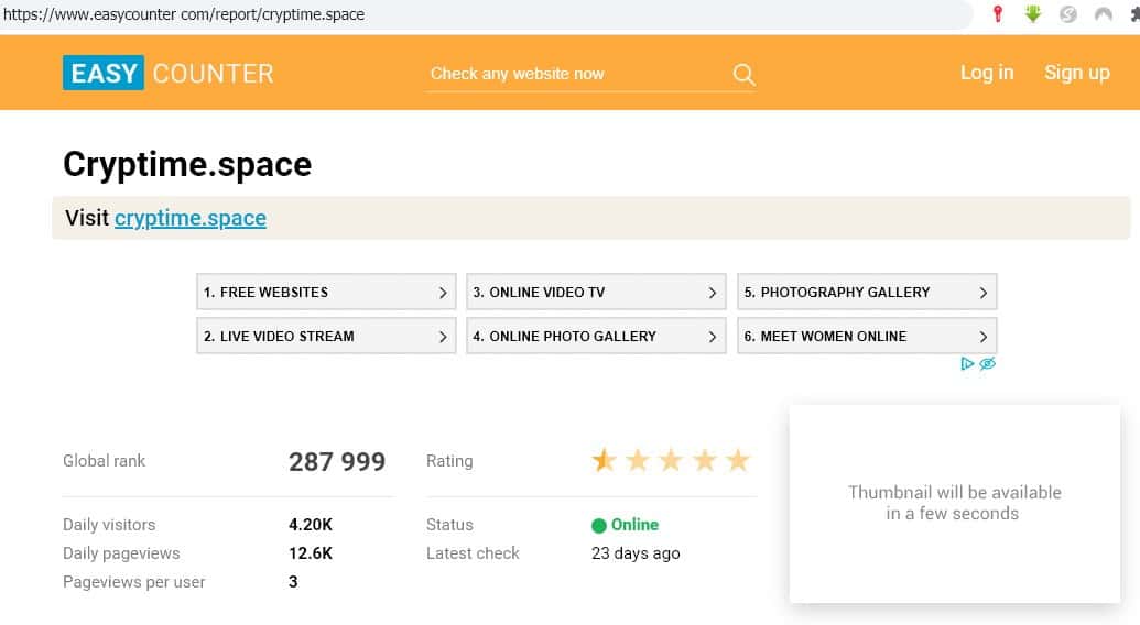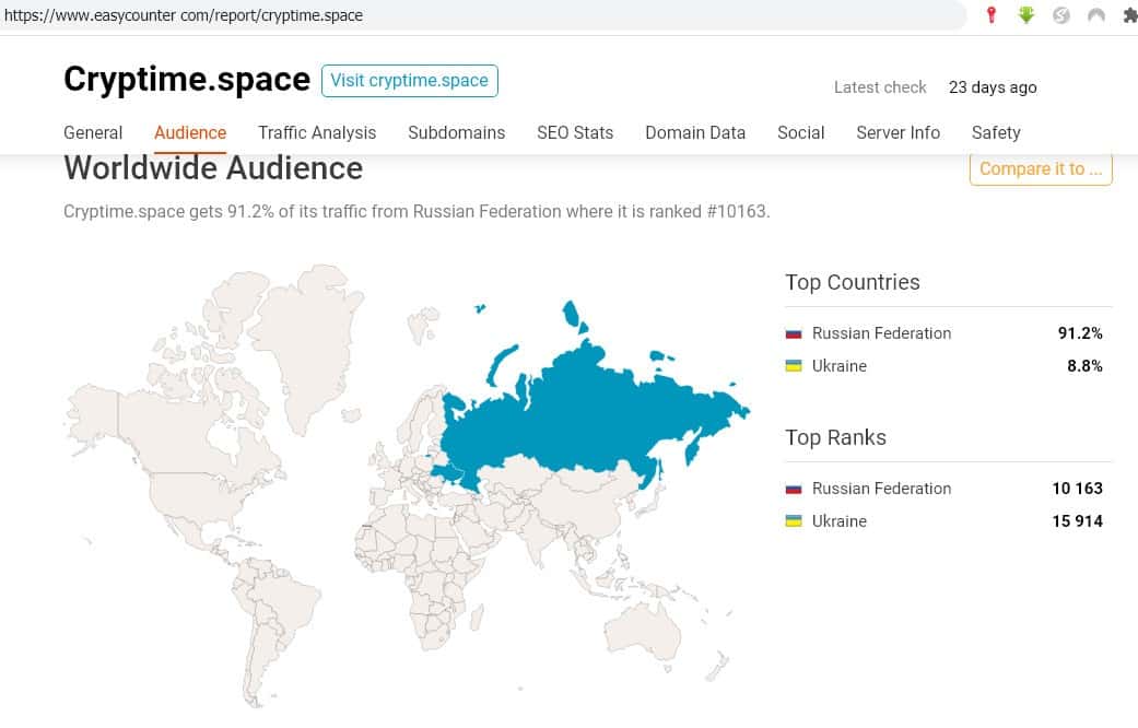 Анализ посещаемости портала аферистов Крип Тайм по сведениям сервиса easycounter