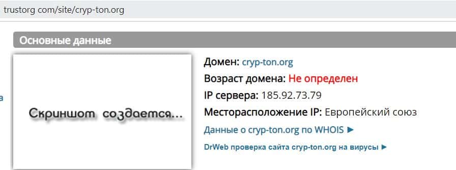 Если верить данным с сервиса Трасторг, мошенническая контора cryp-ton org скрывает информацию о своем возрасте. Это могут делать только аферисты.