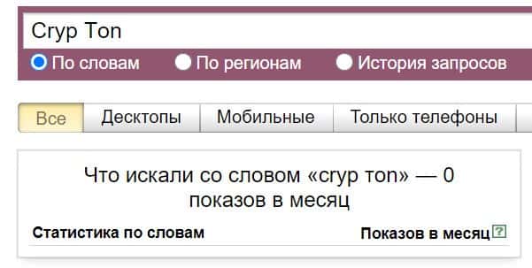Проверка по названию бренда на английском языке с пробелом "Сryp Тon" дала следующий результат: 0 показов - компанию пользователи не искали.