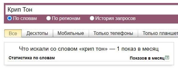 То же название, но написанное с пробелом "Крип Тон", люди пытались найти в системе Яндекс всего один раз.