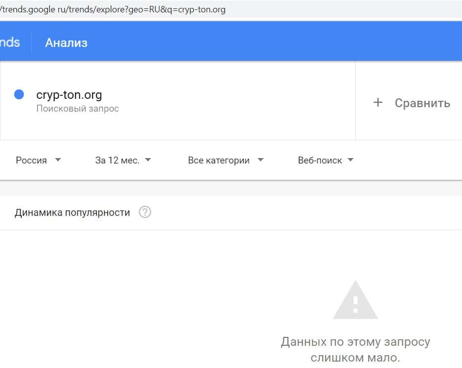 Судя по данным сервиса Гугл Тренд, доменное имя "cryp-ton.org" с точкой искали в поисковой системе крайне редко.