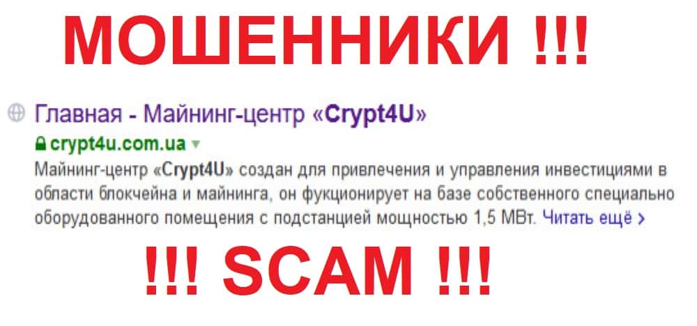 Crypt4U - очередная мошенническая контора, которая по легенде предоставляет услуги майнинга (продажа оборудования) и трейдинга на криптовалюте. На самом деле, это очередные мошенники, которые сделали новую обертку для старого развода. Обычная кухня и пирамида, где деньги вращаются исключительно внутри компании, на рынок они не выводятся.