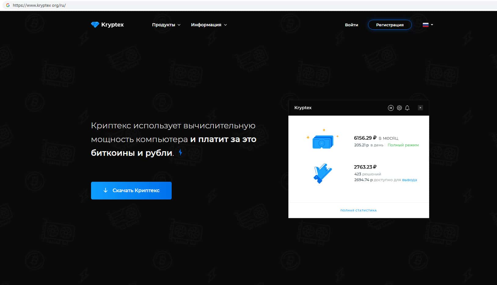 Шулера Kryptex Org создают видимость того, будто продают мощность для майнинга, якобы она намного дешевле и выгоднее. На самом деле отдавая свои деньги Вы никакой платформы не увидите, а компьютер перестанет работать из-за скачанной программы, которая просто накачана вирусами.