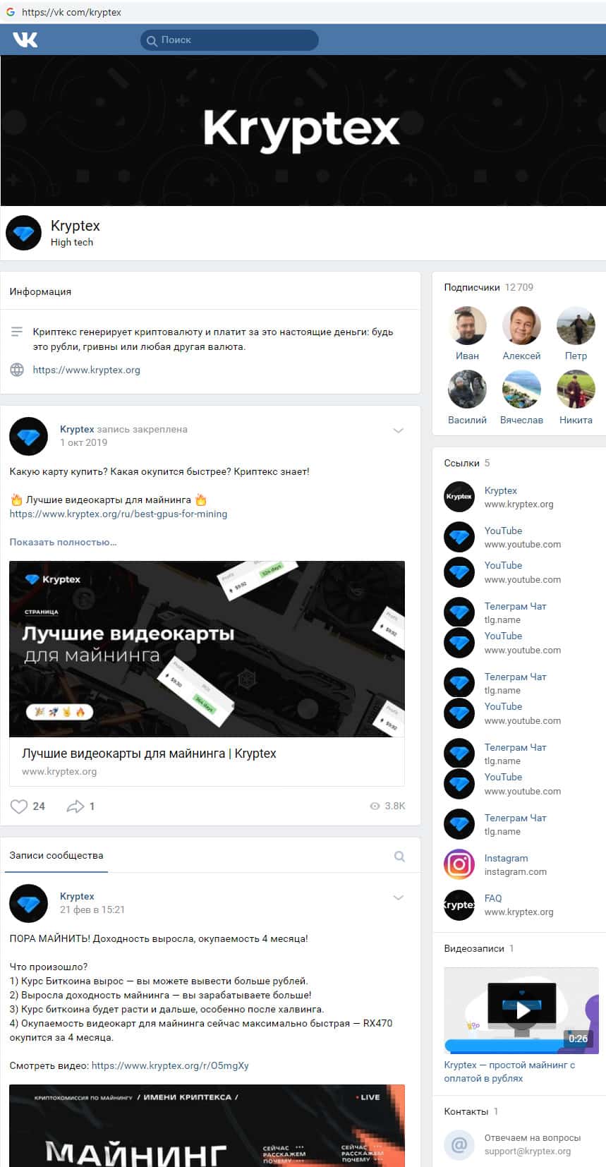 - Шулера Kryptex Org зарегистрировались на сайте Vk com
