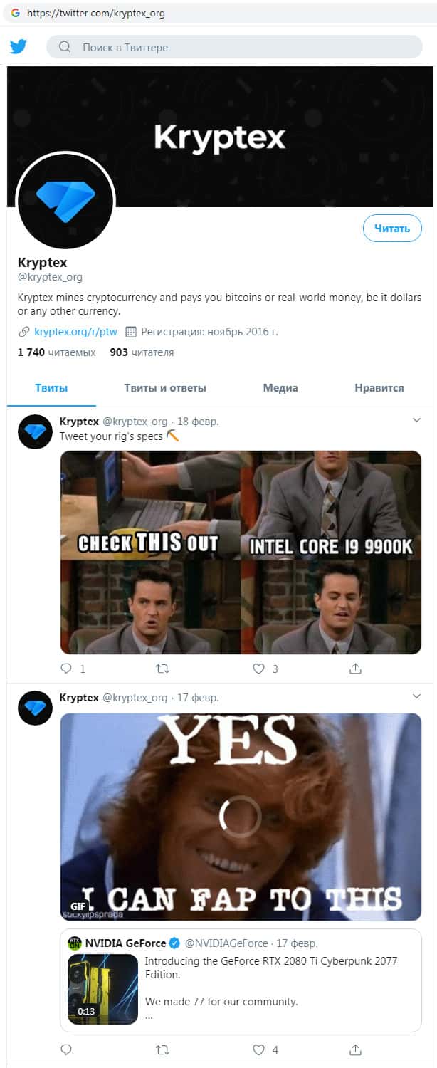 - Скам-контора Криптекс вовлекает клиентов в соц сети Twitter