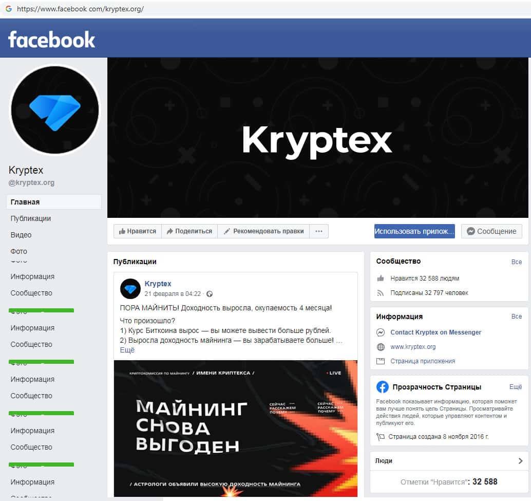- Интернет-лохотрон Kryptex Org вовлекает клиентов с социальной сети facebook
