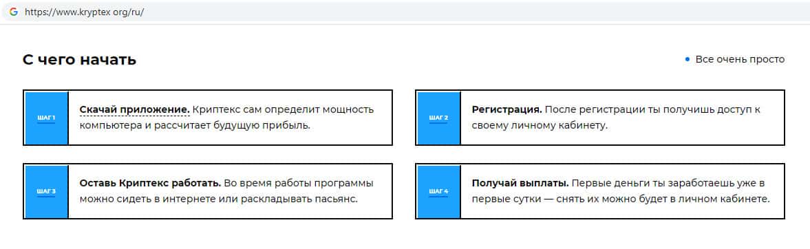 - Лапша на уши о простоте регистрации на сайте аферистов Криптекс
