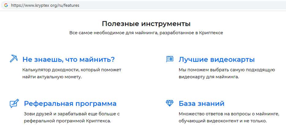 Шулера Kryptex Org на своем дырявом сайте предлагают такие торговые инструменты: калькулятор для подсчета прибыли, видеокарты для майнинга, ответы на вопросы о майнинге. Аферисты Криптекс так же предлагают звать друзей в их шарагу и предлагать им скачивать вирусные программы для автоматизированной торговли криптовалютой.