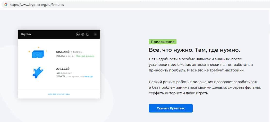 - Шулера Kryptex Org убеждают скачать их программу рассказывая о якобы удобстве пользования сайтом